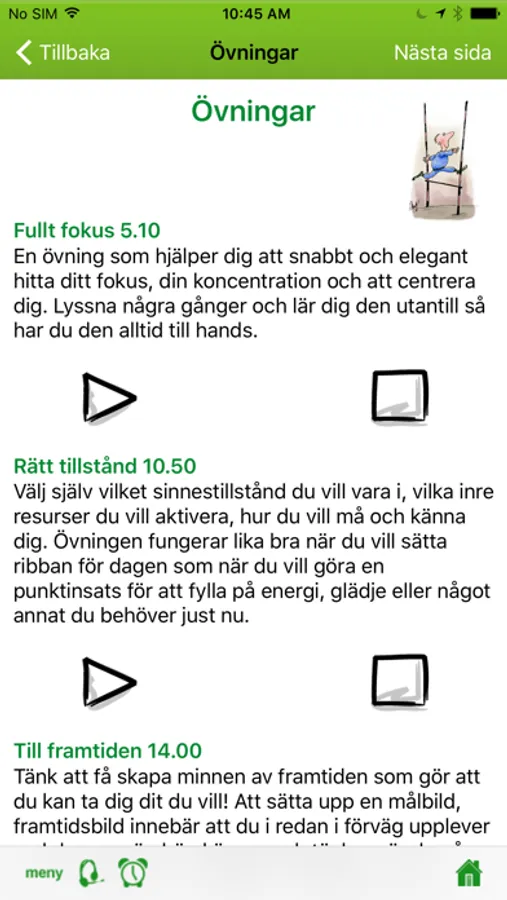 Förutom tre övningar, träningstips, tips för målbildsarbete och hur du gör en handlingsplan så får du lära dig om avslappning och mental träning - allt för att nå dit du vill. Använd gärna hörlurar för att lyssna på övningarna.