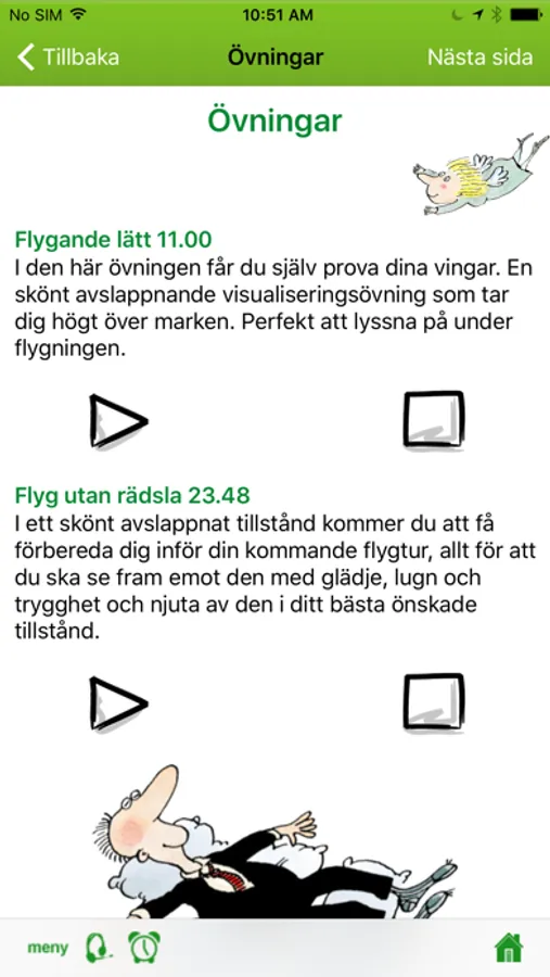 Appen innehåller två övningar som hjälper och lär dig att hantera din flygrädsla eller helt bli av med den. Använd gärna hörlurar för att lyssna på övningarna. Du får lära dig om mental träning – tankens kraft och konkreta tips för en flygande framtid.