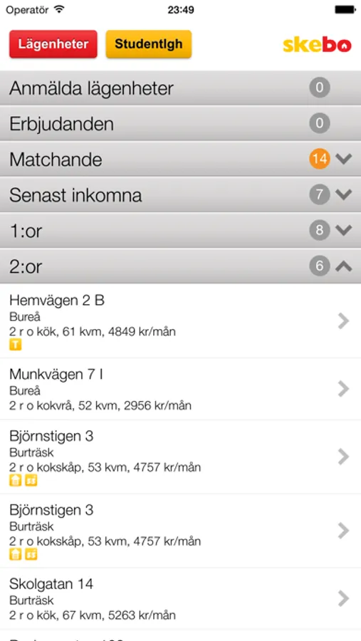 Här kan du se Skebos lediga lägenheter och göra intresseanmälningar.