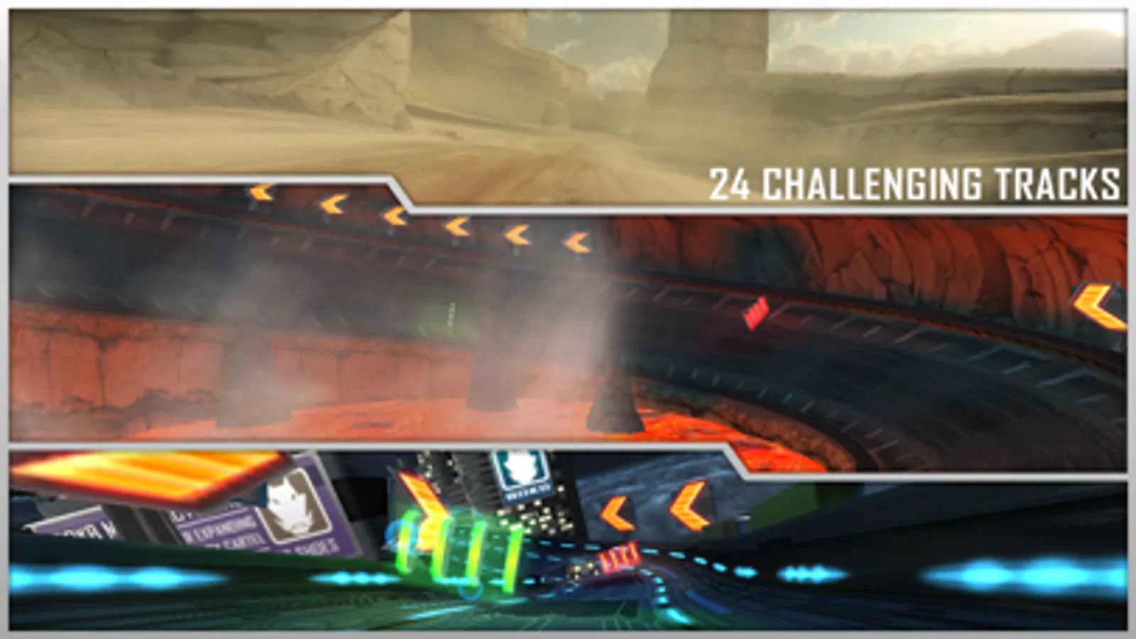 Get ready for a futuristic adrenaline rush from the developers of Reckless Racing. Blast through gravity defying tracks while collecting precious energy boosts to push your speed beyond reason!