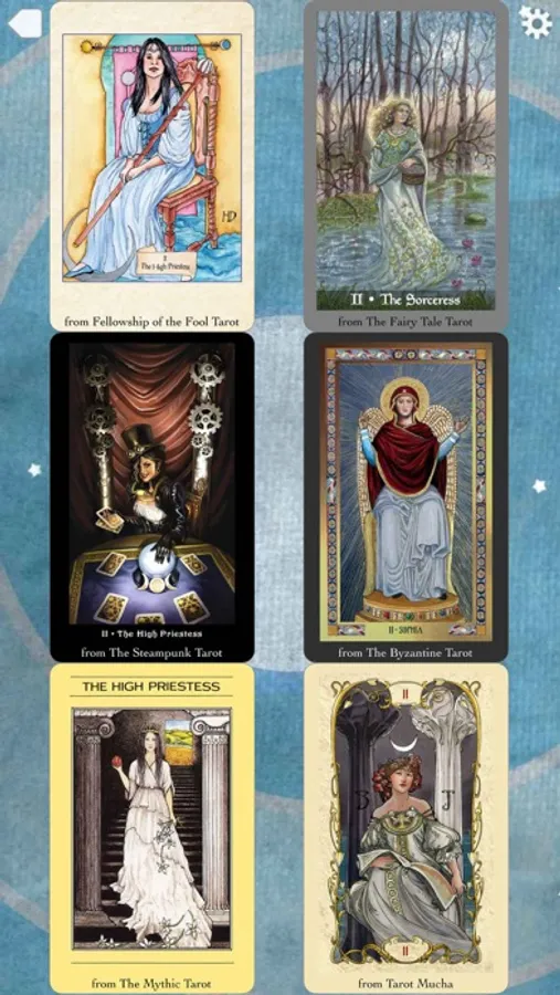 The Tarot Sampler shares every feature of The Fool’s Dog apps. You can read Tarot cards, journal your readings, and share on social media. Interpreting your readings is a breeze: just tap on the card to see the meaning. Or, you can use the Tarot Sampler to browse The Fool’s Dog Tarot offerings, and see which decks make your heart sing!