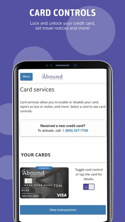 • Lock and Unlock Credit Card – if your card goes missing, no need to call us. Set up travel notices and more. You are in control!