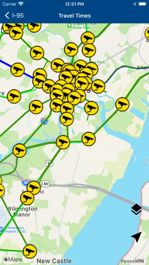 - Advisories for accidents and other incidents on the roadways
