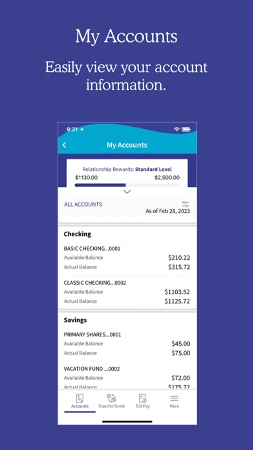 • NEW AND IMPROVED! MANAGE YOUR ACCOUNTS – View your Relationship Rewards level and benefits, your account balances and transaction history, transfer money between your accounts, and much more!