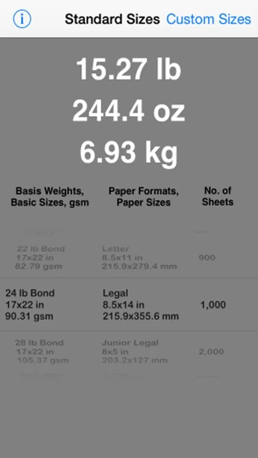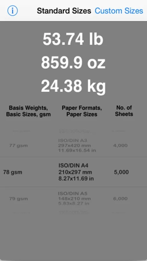 This app calculates the weight of paper based on paper classification, basis weight or grammage, size, and sheet quantities.