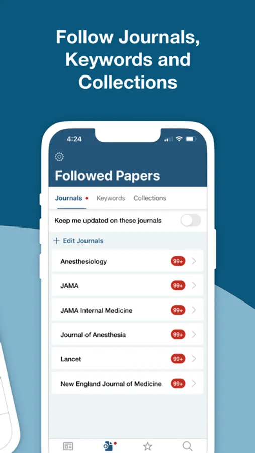 This iPhone & iPad app provides a simple interface that drives discovery and seamless access to the medical literature by reformatting it into a personalized digital journal.