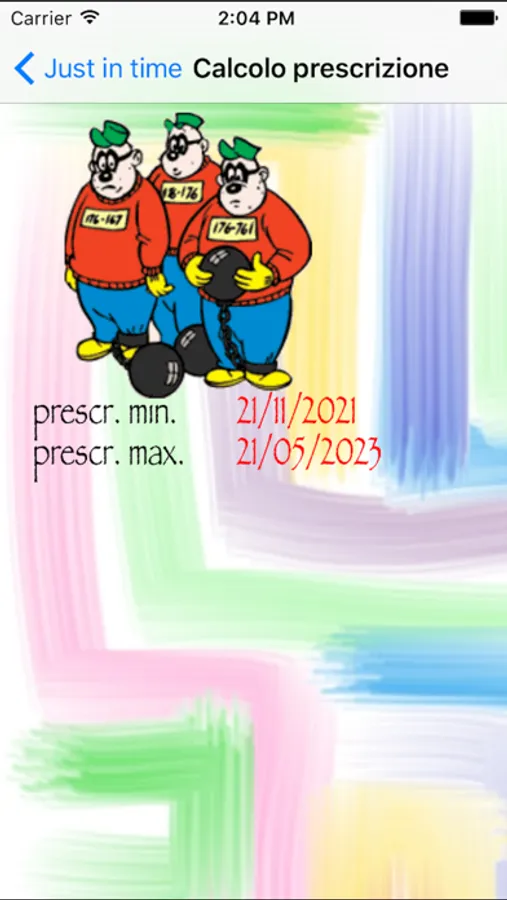 BASTA CON IL PALLOTTOLIERE!!! Just in Time è l’unica applicazione per Iphone e IPad che ti permette di calcolare la prescrizione dei reati in modo semplice e veloce, inserendo data di commissione, ultima interruzione, pena prevista per il reato (anche prima della ex Cirielli) ed eventuali sospensioni. L’app prevede anche la possibilità di calcolare gli aumenti per recidiva e reati di cui all’art. 161, comma 7, c.p. e tiene conto dell’eventuale pendenza di appello al 8.12.2005.
