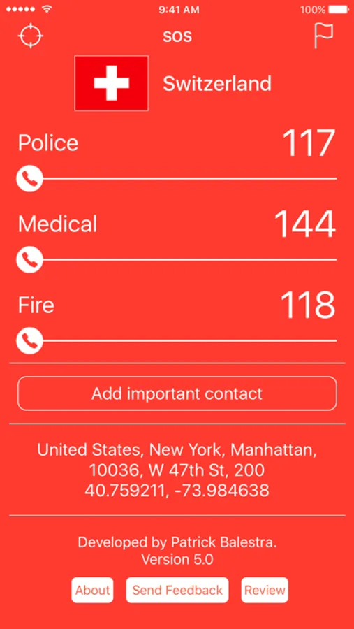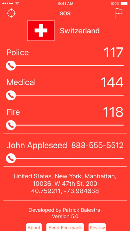 With the simple "locate me" button the app will automatically find the emergency phone numbers wherever your are.