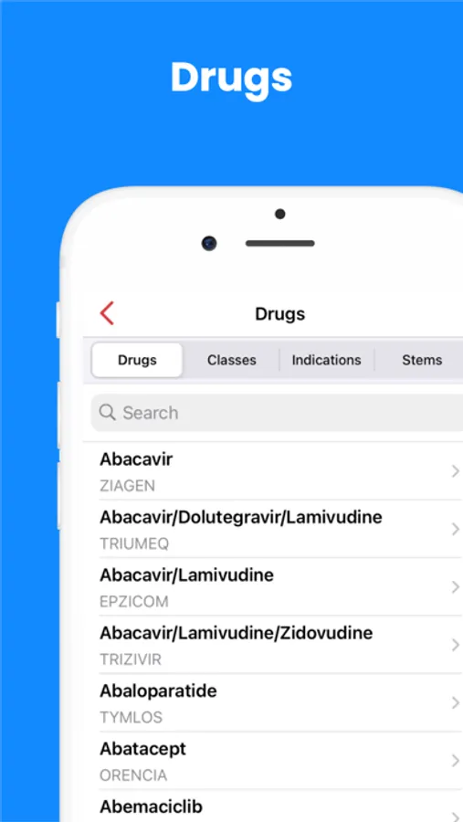 ■ Concise information on 4500+ search terms, covering common needs such as: generic names, trade names, drug classes, diagnosis, contraindications, interactions, and Indications.