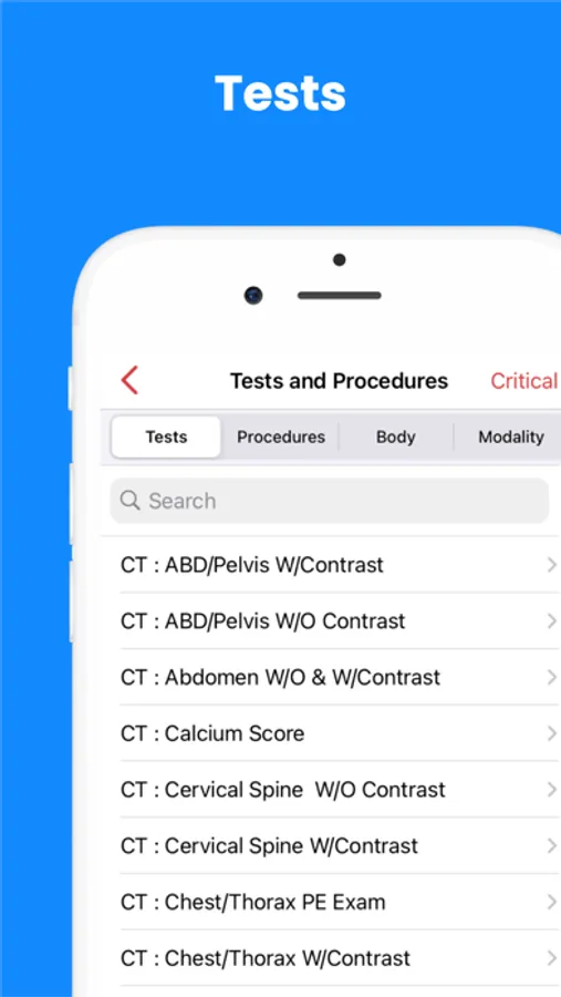 ■ Quickly access indications of commonly ordered diagnostic imaging tests (CT, MRI, Ultrasound, X-ray and more) and procedures.