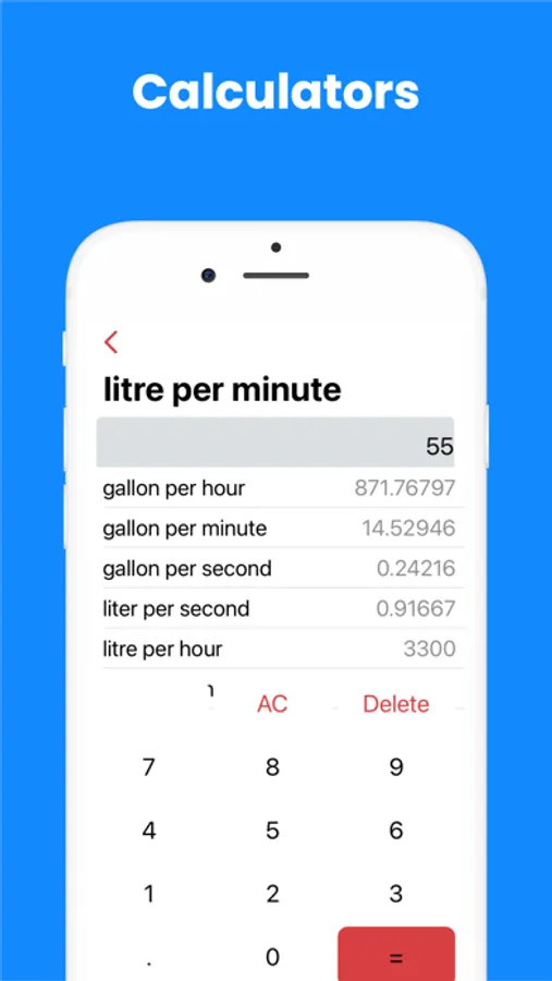 ■ Convert units of measure: Flow Rate, Temperature, Mass (Weight), Height, Length, Volume and more.