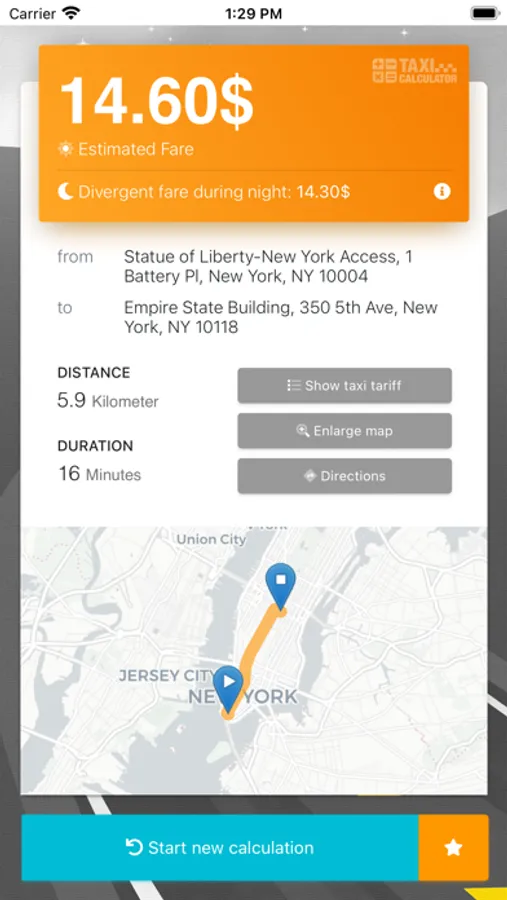 With our Taxi Calculator app you can get any taxi fare around the globe fast and easy. Just enter start and destination address or chose between out automatic address suggestions or just shake your phone: the app returns the exact taxi fare estimation within seconds.