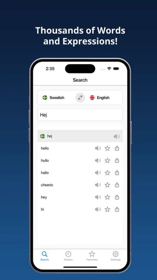 Offline English Swedish Dictionary. Over 34.900 words and expressions! With pronunciation!