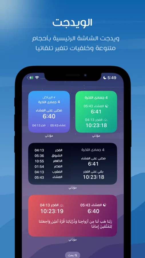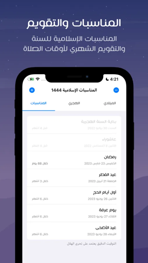 مؤذن ليبيا لا يعتمد على عمليات حسابية لتحديد مواقيت الصلاة بل يعتمد على قاعدة بيانات مطابقة للتقويم المعتمد من وزارة الأوقاف الليبية بحيث يعرض أوقات الصلاة بدون تقديم دقيقة أو تأخيرها.