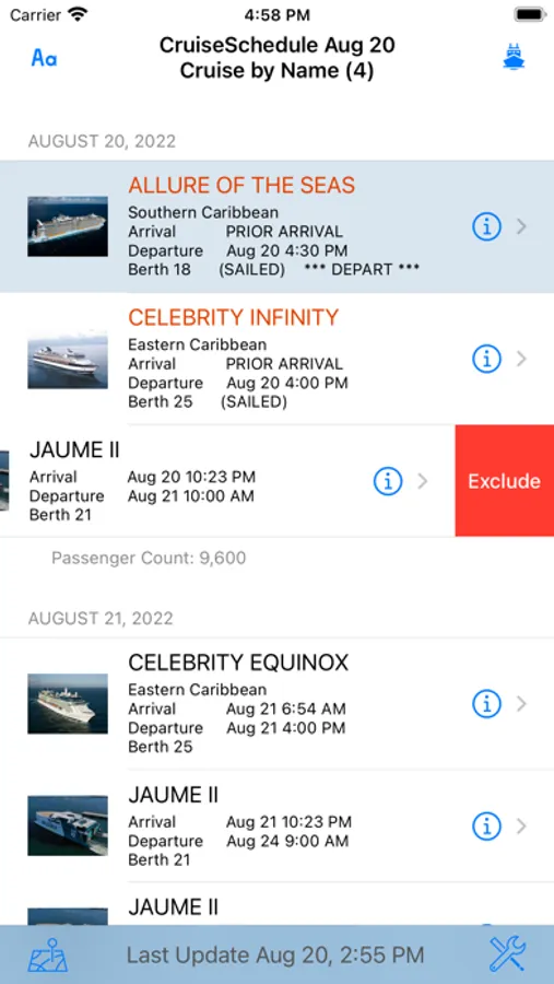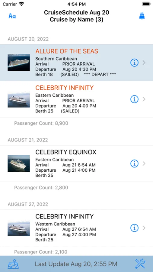 Schedule is based on the Port Everglades harbormaster ship's schedule as updated every four hours. Cruise ship itineraries are based on information available from the cruise lines at the time of the app's publication and is subject to change.