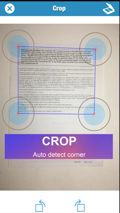 MyScan uses advanced algorithms to auto-detect document edges, perspective correction, removed shadows and set a best contrast for black and white document.