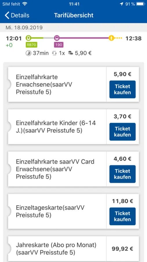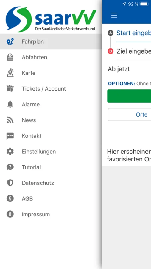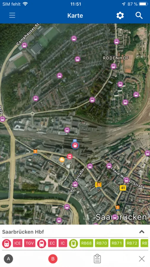 The “Saarfahrplan” is the Saarland transport association’s official App with a mobile routing platform and an integrated saarVV online shop for the purchase of mobile phone tickets from a selection of tickets.