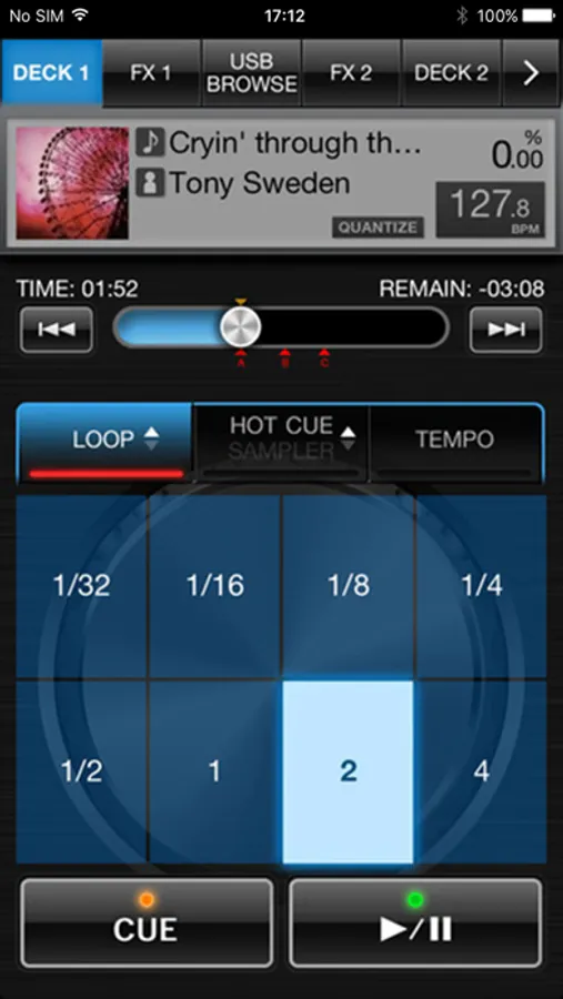 When in the MIDI control mode, the DJ device and an iPad, iPhone and/or iPod Touch can be used to control a total of four channels.
