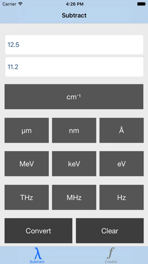 The Spectroscopic Unit Converter is a specialized app for scientists, postDocs, PhD students and grad students, working in the spectroscopic field.