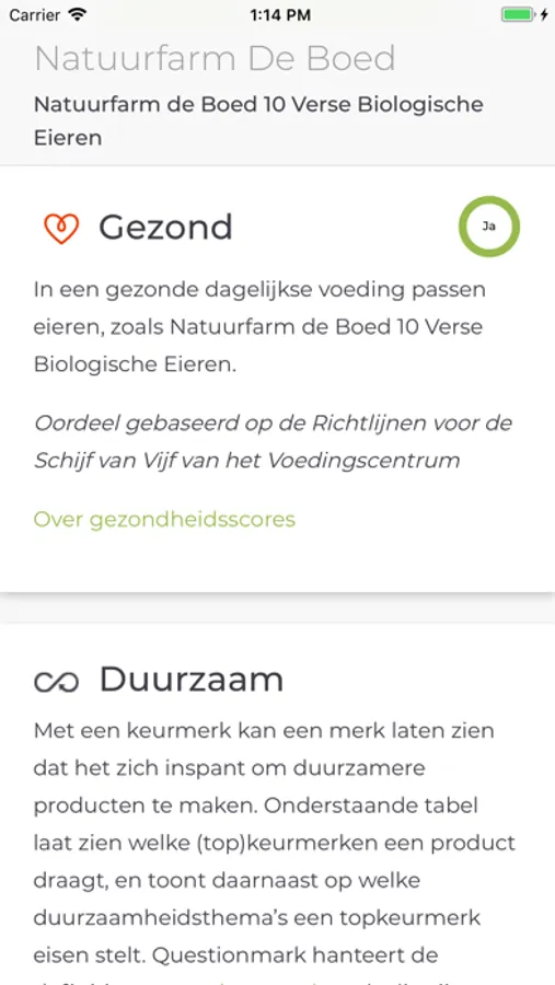 2. Bekijk de gezondheids- en duurzaamheidsinformatie