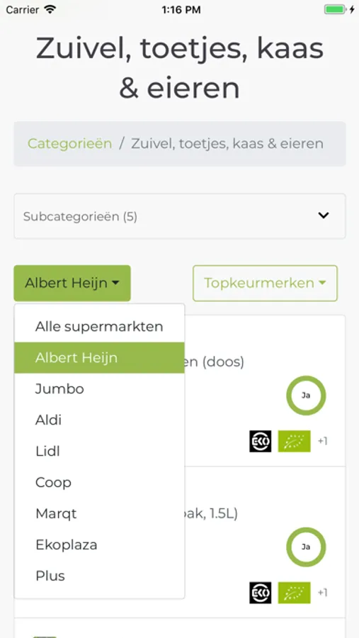 - Je kunt zoeken naar meer dan 50.000 producten van alle grote supermarkten