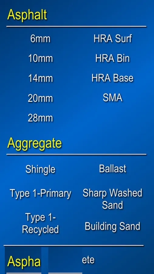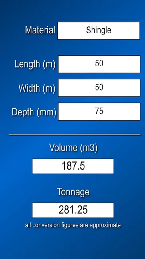 This app easily and conveniently converts M3 to Metric Tons for easy ordering of Asphalt and Aggregates to site. Choose your material and input your measurements and let the calculator do the work for you as all the formulas are built in.