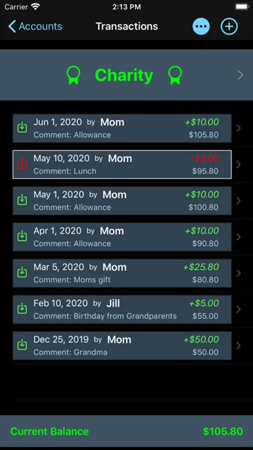 •Keep track of each account balance and history