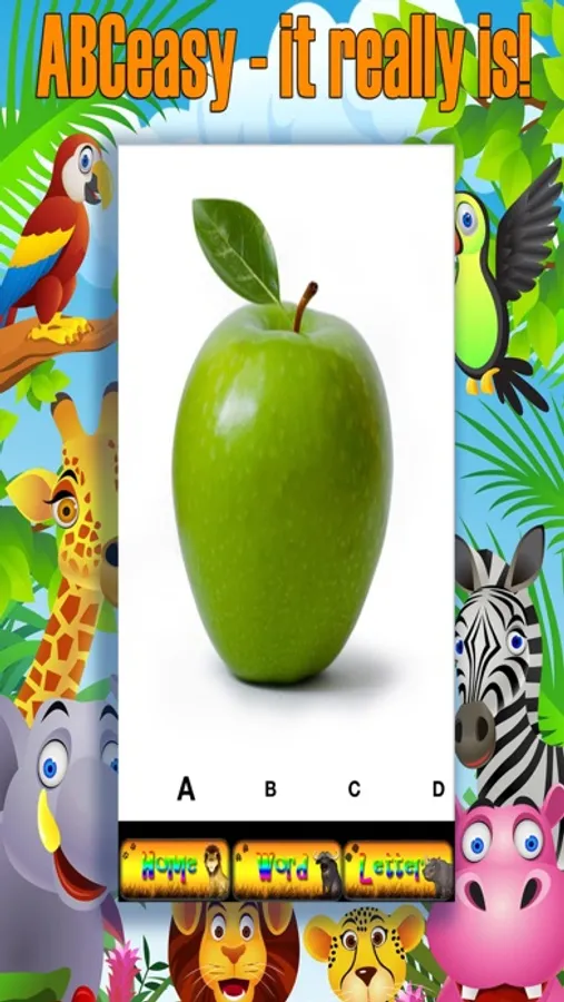 For each letter (A-Z) there is a picture, which you can then choose to press a button to sound either the letter or the word, for example, when the picture for A is shown, a picture of an Apple appears.