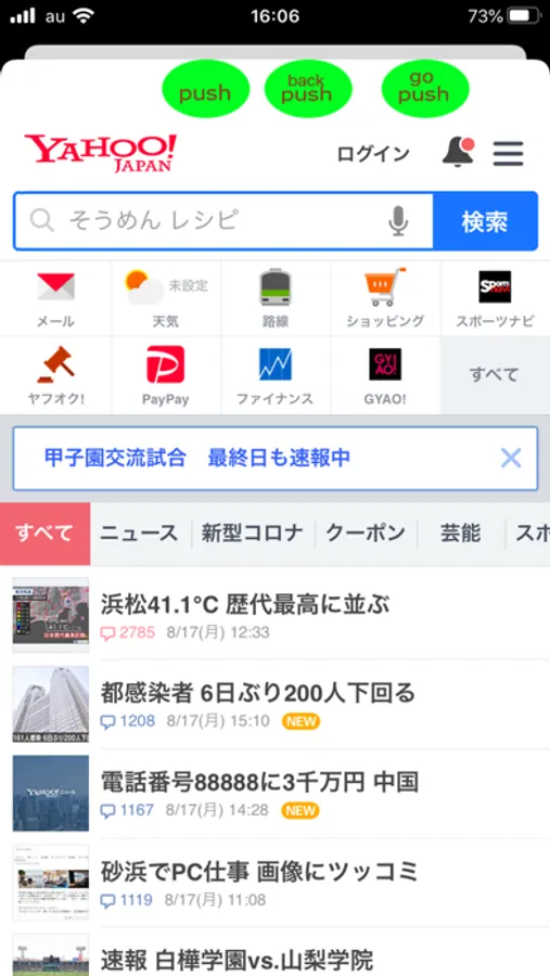 There are three features of this application. Can write to space on memory and computer pages. Yahoo Japan and Google's two search functions that are easy to move quickly on the Internet and A silent video about the story of quantum theory that has become a news topic in recent years. This silent video is a silent video of the telop type in which the characters flow horizontally, which is often used for street news. I think it's easier than reading a book.