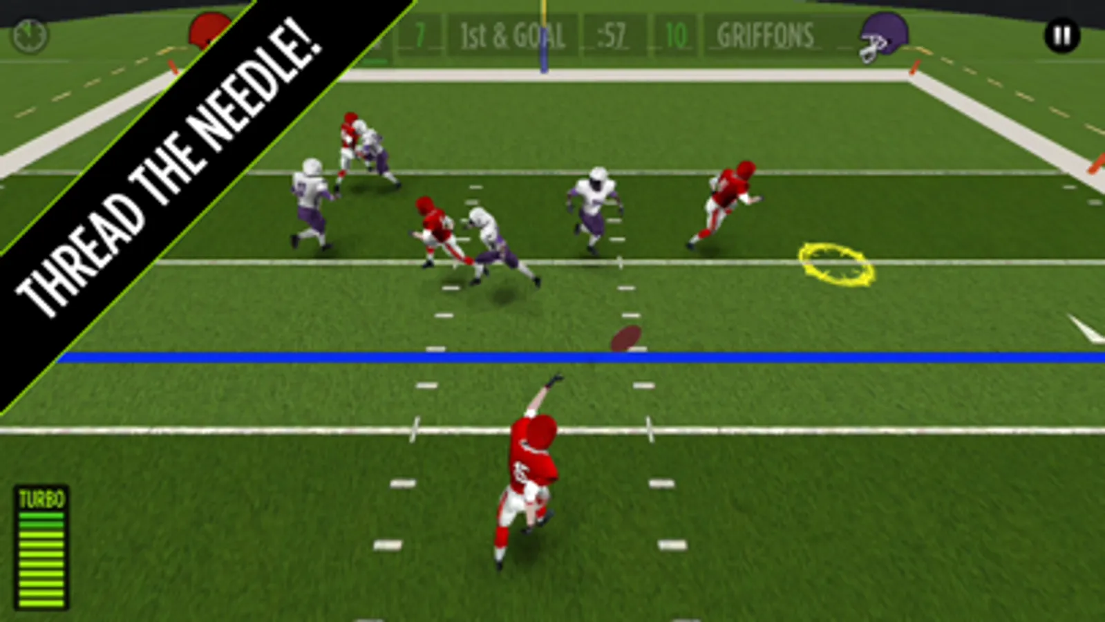 No preset passes! Develop passing skills as you learn to anticipate the throw and lead your receivers. Master your craft with short passes, bullet passes and deep bombs...all to lead your team down the field to glory.