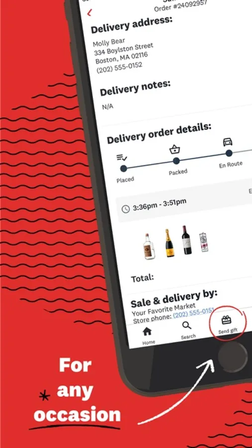 + Send a Gift: Have something to celebrate? Send the perfect gift directly to your loved ones or clients with ease through the Drizly app.