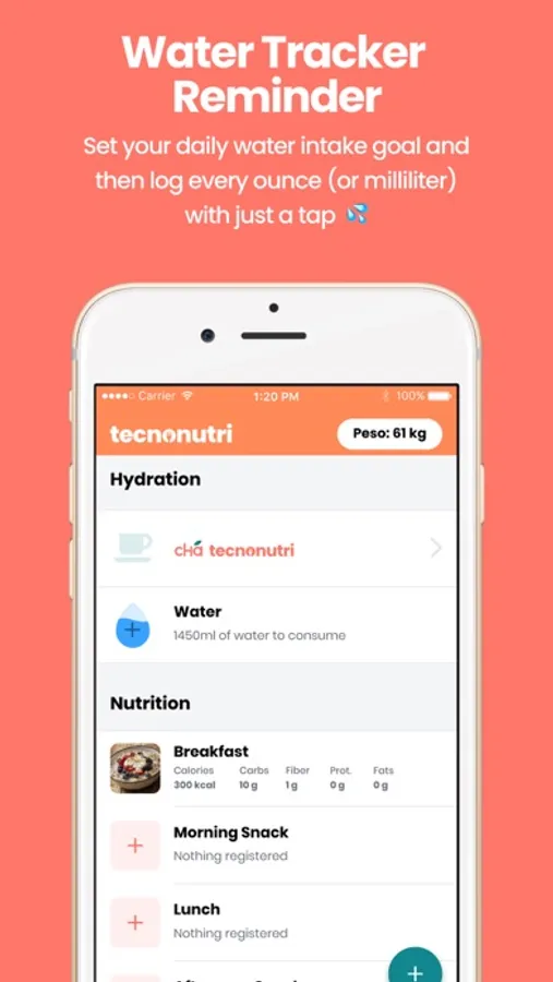 - Reminders will help you to remember to drink enough water and to add your meals