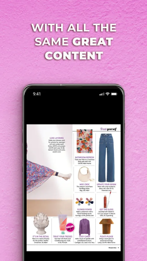Woman's Own is for today’s value-minded 40-plus woman who wants inspiring real-life stories mixed with money-saving tips, affordable fashion, anti-ageing beauty advice and delicious, speedy recipes. Every issue is packed with stories celebrating women, in-depth special reports, emotional first-person reads and celebrity columnists. Our money-saving expert offers the latest ways to save, our diet guru creates the most effective eating plans, while health and wellbeing news are complemented by our in-house GP and experienced counsellor. Readers appear throughout Woman’s Own, recommending their favourite purchases, appearing in makeovers and giving their opinions.