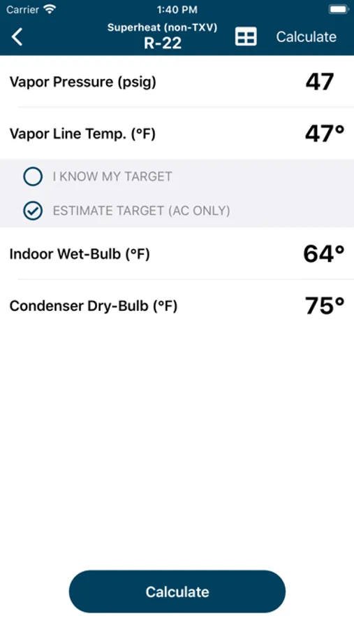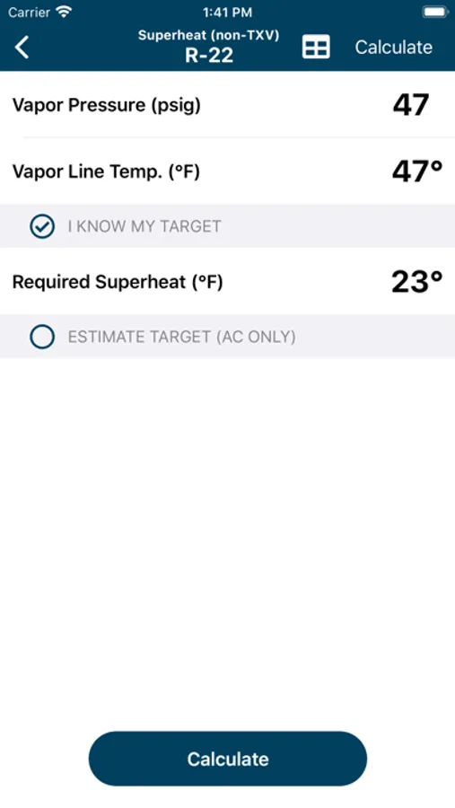 Instant mobile refrigerant charge calculator for HVACR applications.