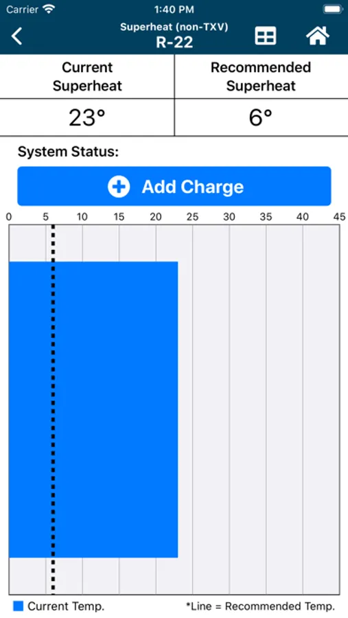 The HVACR Check & Charge™ mobile app from Emerson Climate Technologies provides an on-site refrigerant charge calculator for air conditioning and refrigeration applications. Based on historic sliding cardboard charge calculators, this app allows contractors to easily calculate the correct system refrigerant charge for R-22, R-410A, R-32, R-407C, R-134a, R-452B, R-454B, R-438A, R-422B, R-427A, R-421A, R-404A, R-290, R-449A, R-448A, and R-407A. Contractors can simply choose Superheat, Subcooling, or Airflow and enter the specified system temperatures along with the latent and sensible environmental loads. These values are then used to determine the proper system charge and whether the charge amount needs to be altered based on these conditions.