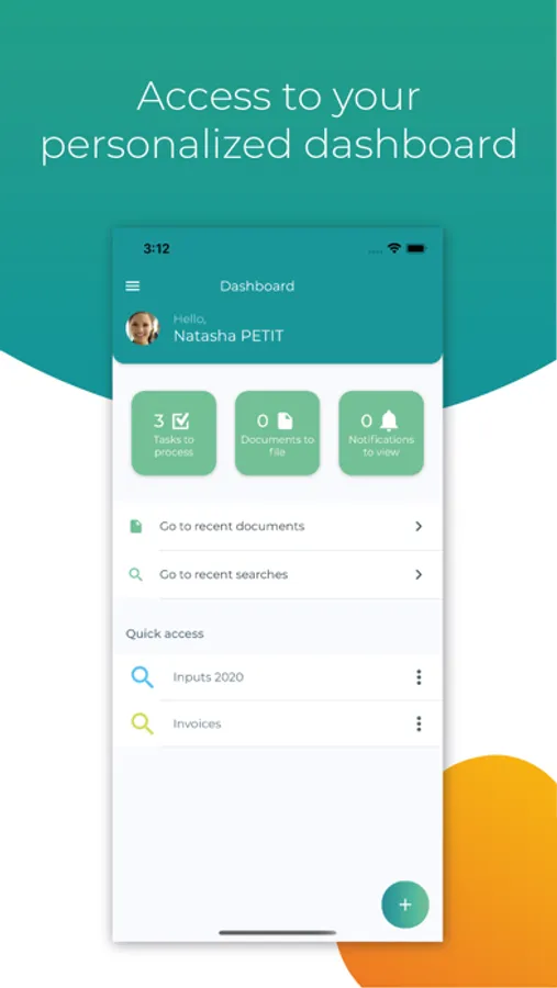 • From the dashboard, quickly access to your favorite files, recent searches and notifications associated with files /folders