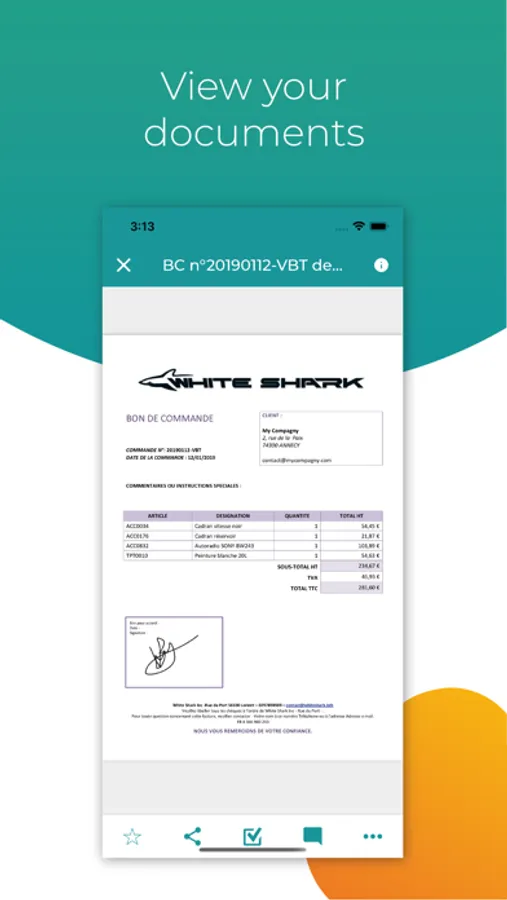 • Approve your invoices, quotes, purchase orders and other files through workflows