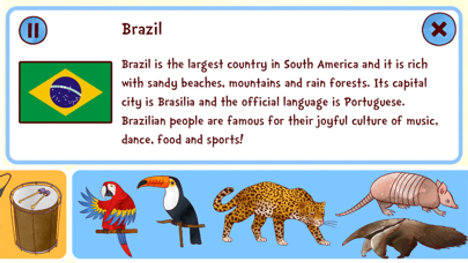 • Your kids will learn smart facts about music instruments, animals, food and culture from around the globe.