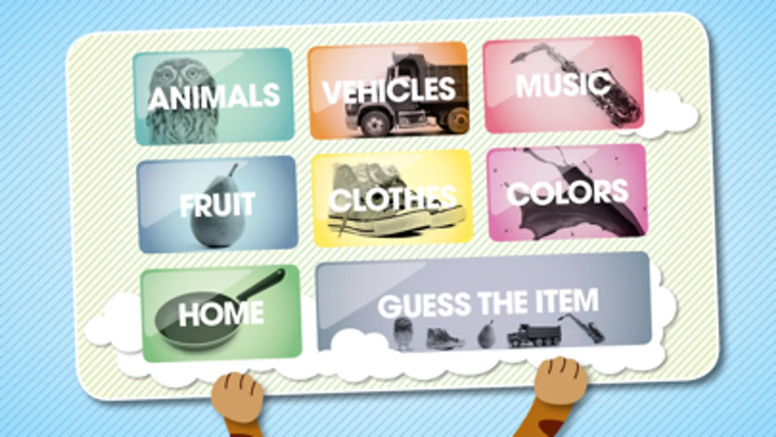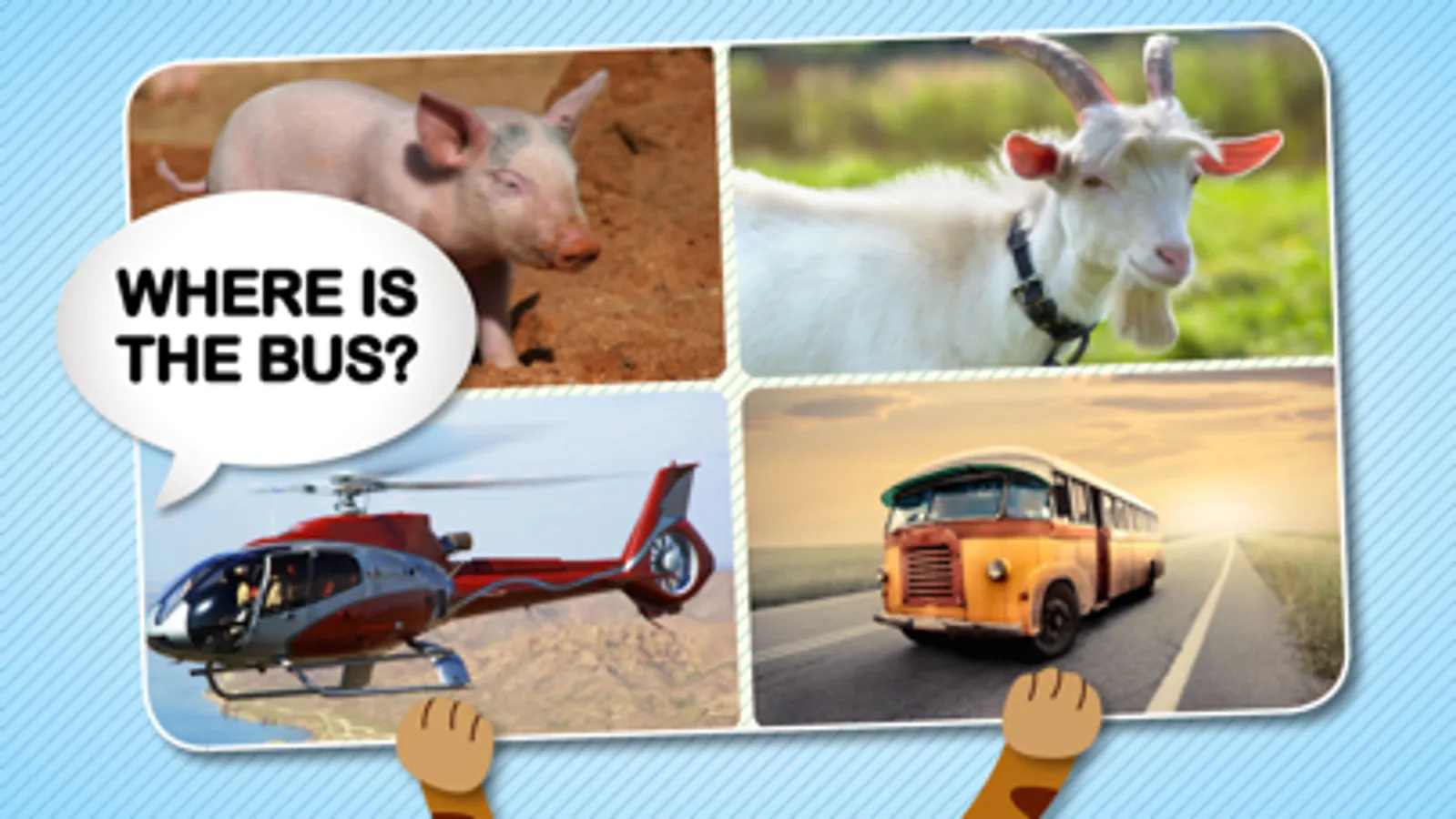 In Guess the Item, 4 different images are shown and a voice will ask the child to locate a certain item, for example "Where is the airplane?".