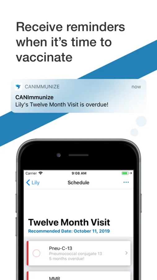 * Receive reminders about upcoming vaccinations right to your home screen.
