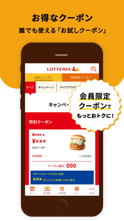 本アプリに記載されている内容の著作権は株式会社ロッテリアに帰属し、いかなる目的であれ無断での複製、引用、転送、頒布、改編、修正、追加など一切の行為を禁止いたします。