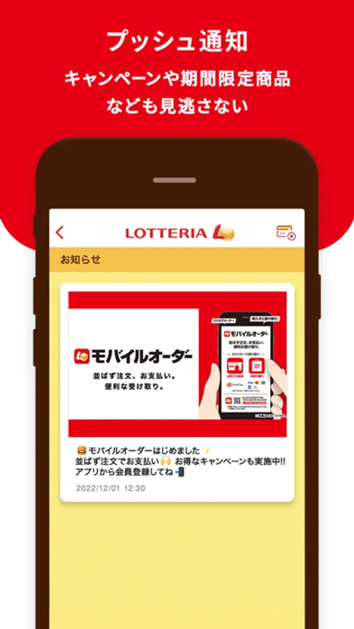 キャンペーン情報など最新の情報をプッシュ通知でお届けします。