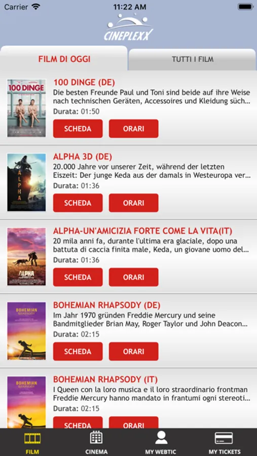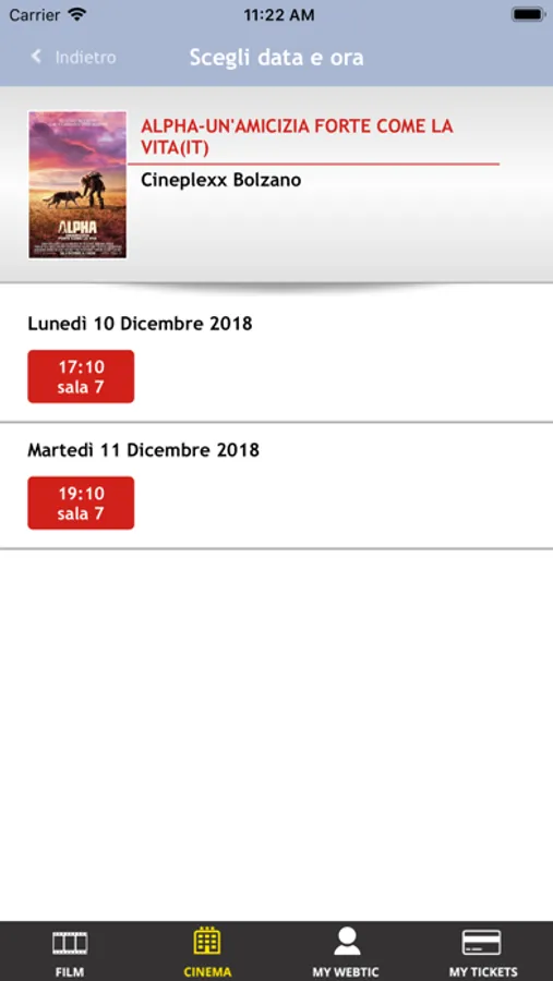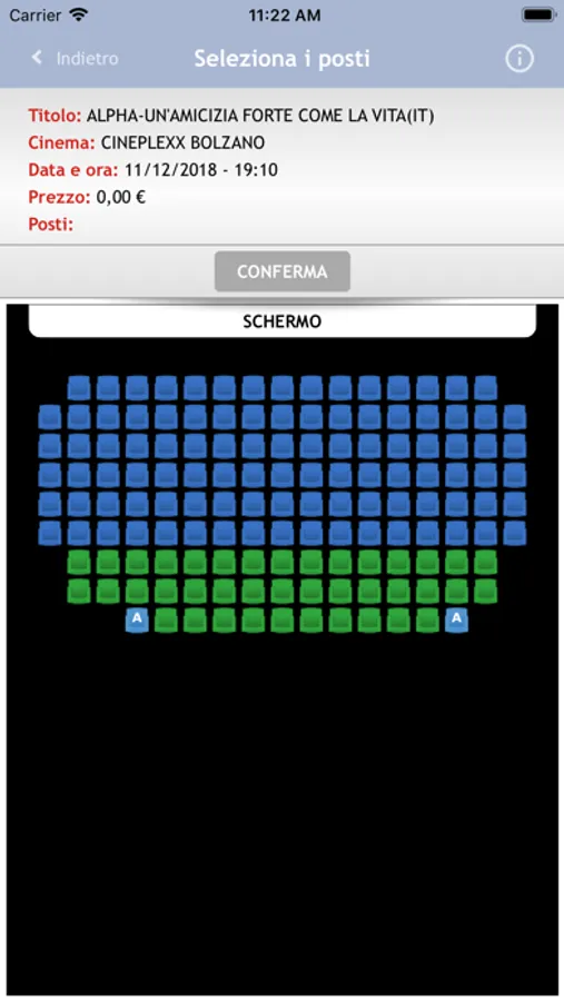 Applicazione di Crea Informatica, per l'acquisto e la prenotazione dei posti nella Multisala Cineplexx di Bolzano.