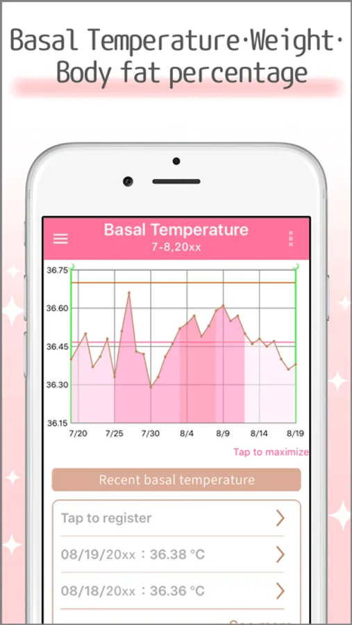 ・With comparison of graphs in Non-maternity and maternity, you can easily check the change of weight by being pregnant. (※with maternity mode)