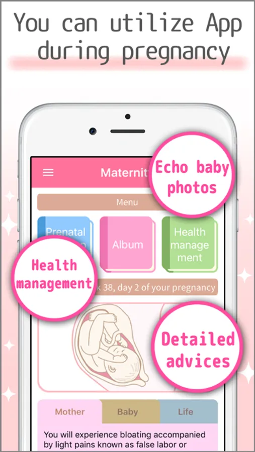 ・Recording prenatal checkup and notification of prenatal checkup schedule are available