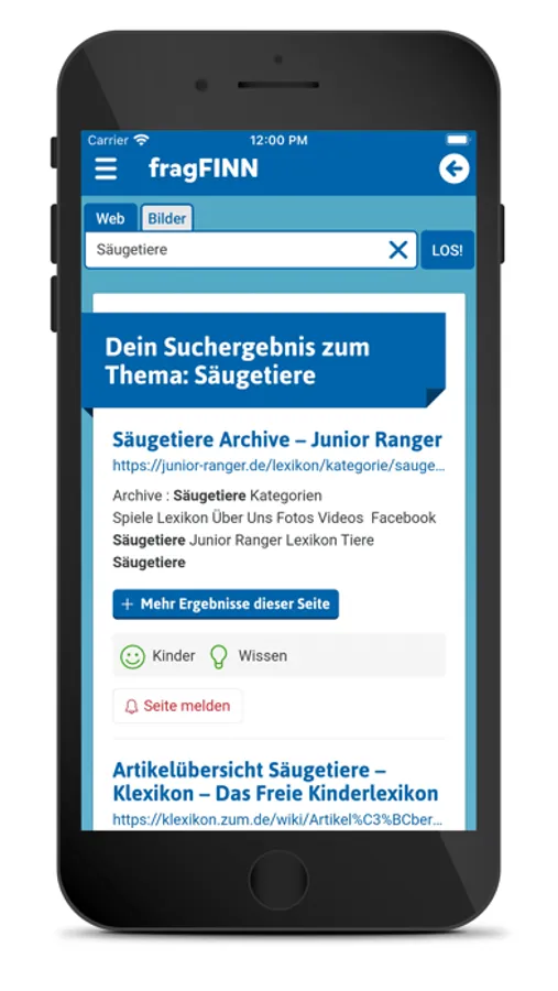 fragFINN bietet mit seiner Suchmaschine fuer Kinder von 6 bis 12 Jahren eine sichere Startrampe ins Internet. Mit der fragFINN-App bewegen sich Kinder in einem geschuetzten digitalen Raum, denn sie surfen nur innerhalb der von Medienpaedagogen und Medienpaedagoginnen geprueften Webseiten. Mithilfe der sicheren Suchmaschine finden Kinder altersgerechte Informationen und viele fuer sie geeignete Webseiten. Auf der Startseite der App gibt es zudem regelmaeßig wechselnde Surftipps mit tollen Kinderseiten, Spielen, Videos und Umfragen.