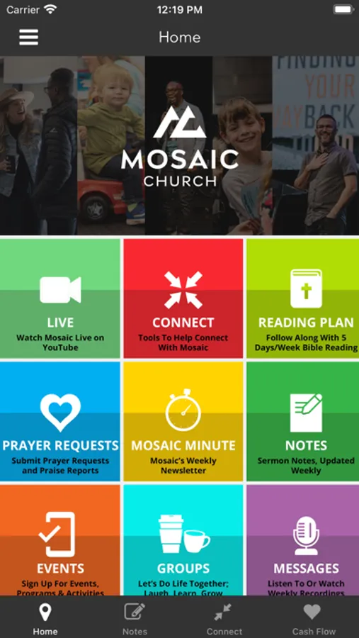 - Submit prayer requests, find directions, call, or email MOSAIC from the app