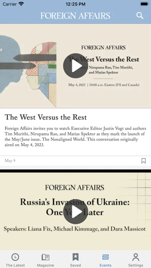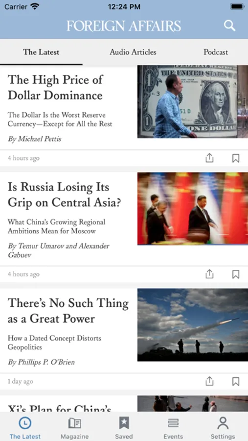 Download the Foreign Affairs app to stay up-to-date on the latest international news, commentary, and policy analysis from influential thinkers and world leaders. Foreign Affairs offers insightful articles, digital issues, podcast episodes, videos, and audio content on critical topics related to geopolitics, security, economics, science and technology, climate change, and more. Foreign Affairs has published globally renowned thinkers and world leaders over the past 100 years from around the world and across the political spectrum, including W. E. B. Du Bois, Eleanor Roosevelt, George Kennan, Madeleine Albright, Henry Kissinger, Nelson Mandela, Hillary Rodham Clinton, Barack Obama, Jill Lepore, Eric Schmidt, Samantha Power, Fareed Zakaria, and more. Get new, relevant articles on international topics of interest daily. Subscribers get additional access to digital magazine issues. Podcasts and event videos are free for all users.