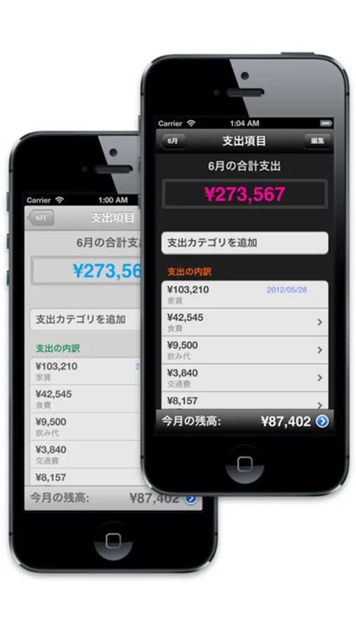 "家計簿くんPro"は毎月の収入や支出をカテゴリ別に記録していくアプリケーション。