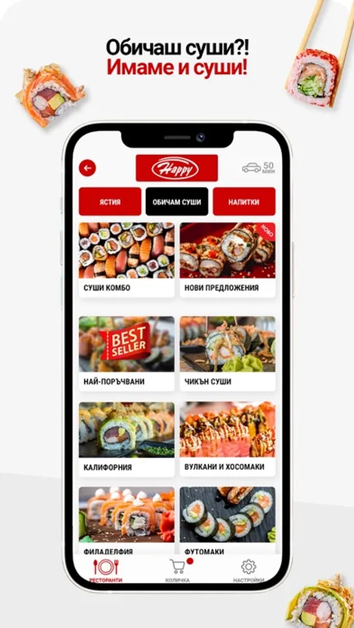 Чрез мобилното приложение на Happy Вие можете лесно поръчате ястия от нашите заведения във Варна, София, Бургас, Пловдив или Русе.
